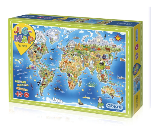 Bohato ilustrovaná mapa celého sveta s obrázkami zvierat, pamätihodností a zaujímavostí, ktoré sú typické a jedinečné pre jednotlivé štáty a svetové kontinenty. Okrem množstva detailov obsahuje puzzle navyše špeciálne rovnako tvarované dieliky s názvami štátov a kontinentov, ktoré je možné umiestniť priamo do puzzle obrázku. Puzzle tak zároveň slúži ako vynikajúca pomôcka pre vzdelávanie a zlepšovanie zemepisných znalostí. Upozornenie: Uvedené geografické názvy a pomenovania na puzzle sú v angličtine. Rozmer zloženého puzzle cca 68,5 x 49 cm