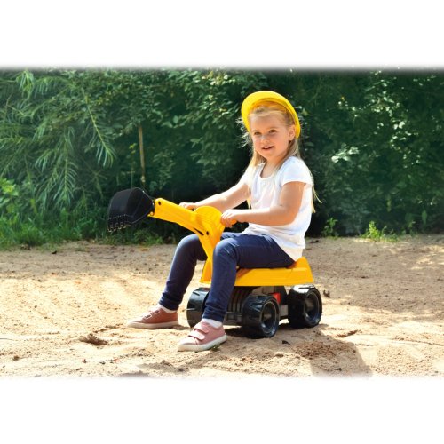Robustný bager s veľkou plochou na sedenie, 6mm hrubé kovové osky kolies. Moderný detailný design. S ramenom je možné kopať do hĺbky až 20cm. Otočný podvozok o 360 stupňov. Súčasťou poistka na zabezpečenie otáčania. Ovládanie bagrovacieho ramena pomocou dvoch praktických držadiel. Veľkosť bagru: 67 cm Rozmer balenia: 70 x 35 x 28 cm Vhodné pre deti od 3 rokov.