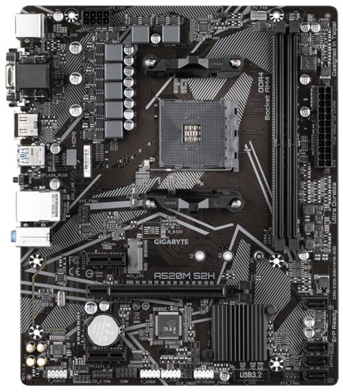Základná doska GIGABYTE A520M S2H navrhnutá pre procesory AMD Ryzen 3. generácie a AMD Ryzen 3. generácie s Radeon Vega grafickou kartou. 4+3fázové digitálne VRM napájanie podporuje stabilný prísun energie, kvalitné MOSFETy s nízkym RDS(on) minimalizujú energetické straty a podieľajú sa na celkovej úspore energie. Vysokorýchlostný herný LAN Realtek 8118 podporuje komfortné hranie hier a dáva im vyššiu prioritu, čo oceníte najmä pri gamingovom zápolení po sieti.