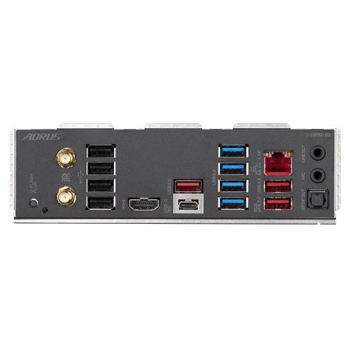 Externé porty: *1 x Q-Flash Plus button *2 x SMA antény konektory (2T2R) *4 x USB 2.0/1.1 ports *1 x HDMI port *3 x USB 3.2 Gen 2 Type-A ports (red) *1 x USB Type-C port, s USB 3.2 Gen 1 support *4 x USB 3.2 Gen 1 ports *1 x RJ-45 port *2 x audio jacks *1 x optical S/PDIF Out connector