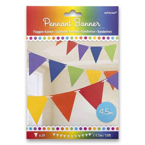 Farebná papierová girlanda v tvare trojuholníka, 18 cm x 4,5 m.