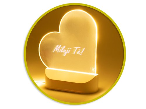 Glamour tabuľka v tvare srdca 16 cm na USB svietiaca s fixami 7 ks