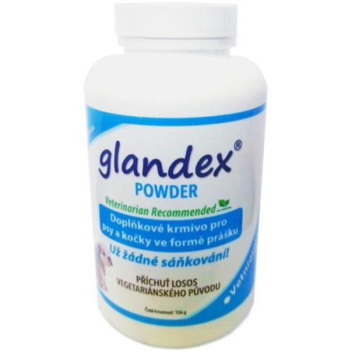 Zloženie Glandex je vyrábaný v USA z vysoko kvalitných prírodných zložiek zahŕňajúcich tekvicové semienko, vlákninu z jablčnej drene, bromelaín a quercetin. Je obohatený aj o probiotiká. Kŕmny návod Podávajte 1x denne podľa nižšie uvedeného dávkovania. Je potrebné zabezpečiť neustály prístup k pitnej vode. Nepodávajte gravidným a zvieratám mladším ako 12 týždňov veku. Výrobok nie je vhodný pre iné druhy zvierat. Uchovávajte mimo dosahu detí. V prípade, že je pes alebo mačka na špeciálnej diéte (napr. diabetik) alebo užíva lieky, pred použitím doplnku Glandex sa poraďte so svojím veterinárnym lekárom. Glandex Soft Chews - pre psov: dávkuje sa 1x denne formou maškrty Psy pod 7 kg - 1/2 žuvačky denne Psy 7-12 kg - 1 žuvačka denne Psy 12-24 kg - 2 žuvačky denne Psy 24-35 kg - 3 žuvačky denne Psy – odporúčané pre väčšie plemená psov a mačky: dávkuje sa 1 x denne posypom na krmivo Mačky a psy pod 7 kg - 1/8 čaj. lyžičky denne/200 dávok v balení Psy 7-12 kg - 1/4 čaj. lyžičky denne/100 dávok v balení Psy 12-24 kg - 1/2 čaj. lyžičky denne/50 dávok v balení Psy 24-35 kg - 3/4 čaj. lyžičky denne/32 dávok v balení Psy nad 35 kg - 1 čaj. lyžička denne/25 dávok v balení Balenie 30, 60, 120 ks Soft Chews (žuvačky) alebo Powder (prášok) 70 g
