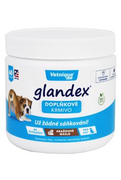 Podávajte odporúčanú dávku 1 x denne. Glandex je dlhodobá kúra, prvé výsledky sa dostavujú cca za mesiac. Na zlepšenie stavu je nutné podávanie min. 2-3 mesiace. Potom je možné postupne vysadiť alebo nechať udržiavaciu zníženú dávku. Glandex môžete podávať dlhodobo. Nepoužívajte u gravidných súk a šteniat do 12 týždňov veku. Ak má zviera zdravotné problémy, lieči sa, je na špeciálnej diéte, kontaktujte veterinárneho lekára pred použitím tohto produktu.