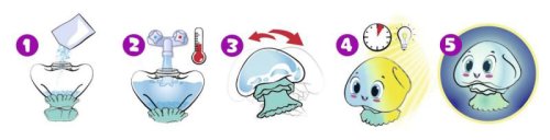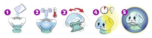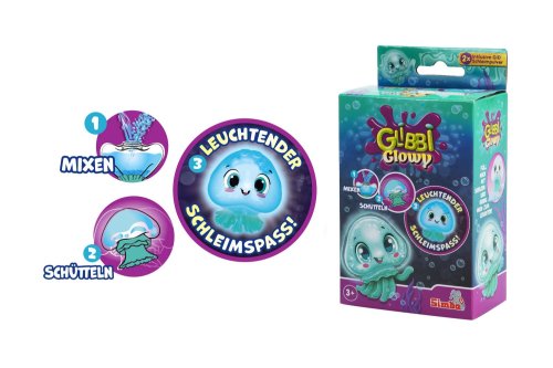 Glibbi Medúza so slizom, ktorý svieti v tme. Keď sa medúza naplní Glibbi práškom, doleje vlažnou vodou a poriadne pretrepe, vytvorí sa tyrkysovo zafarbený sliz, s ktorým sa dá hrať. Keď medúzu so slizom nasvietite pod lampou, sliz potom bude svietiť v tme. Po skončení hrania sliz môžete bezpečne uložiť do medúzy. Vďaka absencii konzervačných látok a umelých dráždidiel je Glibbi Slime úplne dermatologicky bezpečný. V balení je 2x 7g prášku Glibbi.