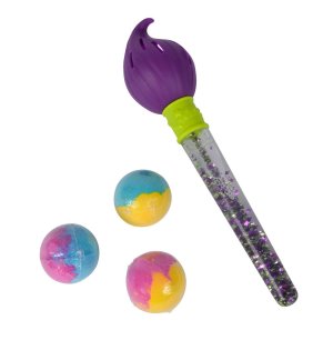 Kúzelný štetec do vane a 3 vodné šumivé farebné bomby v balení. Šumivé gule sa vkladajú do štetčeka a so štetcom možno potom maľovať vo vode.