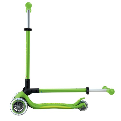 3 kolieska, svietiace predné kolesá, patentovaný skladací mechanizmus, patentovaný zámok riadenia, priemer predných kolies 120 mm, priemer zadných kolies 80 mm, LED predné kolesá (technológia dynamo), protišmykový behúň, odnímateľné hliníkové riadidlá nastaviteľné v 4 úrovniach medzi 68-83cm, ergonomické riadidlá s TPR bezpečnostnými rukoväťami, nosnosť 50 kg
