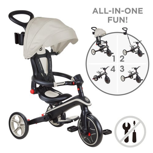 Komfortná trojkolka: od 10 do 36 mesiacov Trojkolka so sprievodcom: od 18 do 36 mesiacov Autonómna trojkolka: 24 až 36 mesiacov Balančné kolo: od 2 do 5 rokov. Vek: pre deti od 10 mesiacov do 5 rokov Maximálna nosnosť: 20 kg Sedák nastaviteľný do 2 úrovní (32 a 35 cm) s pohodlným operadlom Bezpečný 5-bodový pás s pohodlnými vypchávkami Zakrivená bezpečnostná tyč – Riadidlá s pohodlnými a ergonomickými rukoväťami