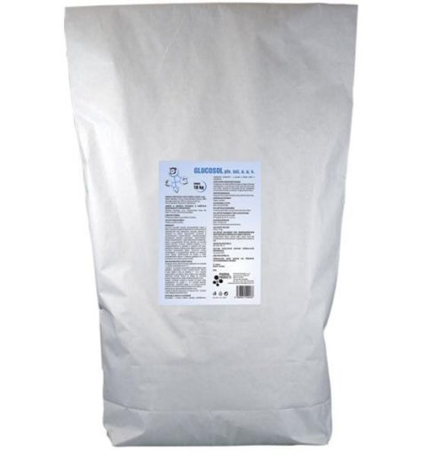 Registračné číslo SR 96/079/99-C Príznak preskripcie SR VP ATC skupina Q02CE Registračný názov + forma GLUCOSOL plv. sol. ad us. vet. Výrobca Tekro sro ., Praha, ČR. Držiteľ reg. rozhodnutia Tekro sro ., Praha, ČR. Zloženie - účinné látky Natriu chloridum 70 g, Kaliu chloridum 30 g, Natriu hydrogenocarbonas, 100 g, Glycín 40 gv 1 kg. Zloženie - pomocné látky Glucosum. Opis lieku Biely až svetložltý hygroskopický prášok. Druh obalu Vrecká z fólie ALUFAL alebo viacvrstevné papierové vrecia. Balenie 500 g, 10 kg. Indikačná skupina Veterinaria - pharmaceutica. Charakteristika Rehydratačný prípravok na orálnu aplikáciu, obsahujúci transportné, a energetické zložky, zložky padporujúce stimuláciu, alkalizačné zložky, a náhradu iónových strát. Indikácie / použitie Cieľový druh zvierat: teľatá, ošípané, kurčatá. Súčasť kauzálnej terapie dehydratačných strát u teliat a ošípaných pri gastrointestinálnych ochoreniach, respiračných, renálnych a syndrómových,ochoreniach, mykotoxikózach, intoxikáciách, otravách, septických, horúčkovitých ochoreniach, pooperačných stavoch, anorexii, hypoproxy. Ďalej pri hypoglykémii a zníženej vitalite, ošípaných. Ako súčasť cytostatickej liečby. Prevencia vzniku dehydratácie, a energetického deficitu po preprave. Podpora adaptácie na nové podmienky, pri preskupovaní do skupín a stád u teliat, ošípaných a kurčiat. Kontraindikácie Nepriechodnosť tráviacej trubice, chirurgické zákroky na tráviacom trakte. Upozornenie Terapiu začať ihneď, akonáhle sa objavia prvé príznaky dehydratácie., Roztok sa pripravuje denne čerstvý: 35 g (2 polievkové lyžice) sa rozpustí, v 1 l pitnej vody teplej cca 37 st. C. Dávkovanie Teľatá: 2-3 l roztoku 2krát denne po 2 dni miesto mlieka alebo miesto tekutého, mliečneho krmiva. Ďalšie 2 dni sa podáva 1-1,5 l roztoku zmiešaného s rovnakým dielom mlieka alebo tekutého mliečneho krmiva. Prasiatka: množstvo roztoku je závislé od ich veku (7denný vrh vypije, 2-3 l denne, odstávče vypije 1-2 l roztoku denne). Liek sa môže podávať najviac 4 dni. Kurčatá: nápoj sa podáva 2 dni. Spôsob použitia Perorálne: u teliat z fľaše, sondou, aplikátorom, napájacím zariadením. U ošípaných a kurčiat voľne z napájačky. Poznámka Napájačky sa musia denne čistiť a udržiavať v hygienickom stave. Ochranná lehota veterinárna Bez ochranných lehôt. Použitie, expirácia 24, roztok sa pripravuje denne čerstvý. Spôsob skladovania Pri teplote do 25 st. C, v suchu. Dátum spracovania 18.10.2010 Autor článku Podľa SPC.