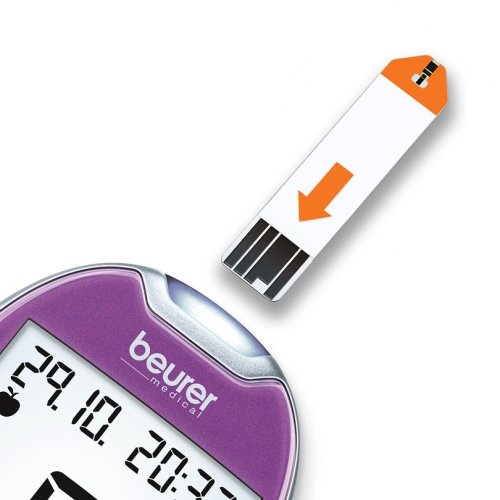 • jednoduché použitie: podsvietený displej, podsvietený slot na test. prúžky, široké prúžky, jednoduché meranie