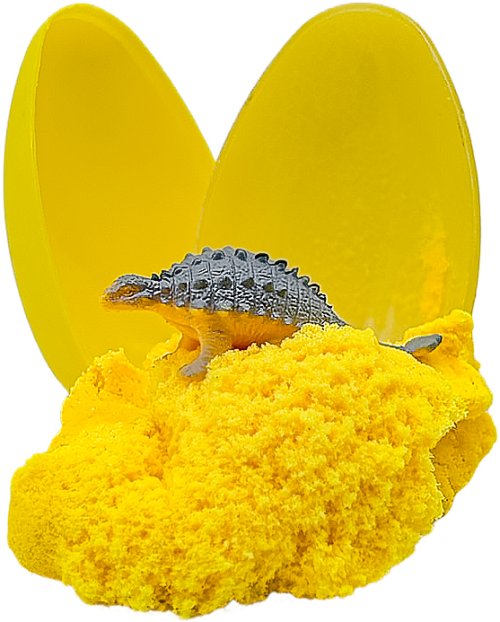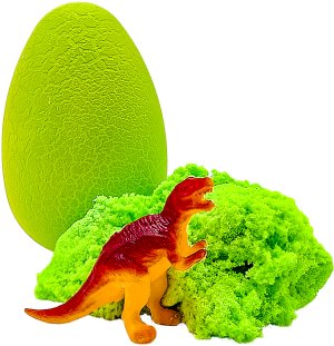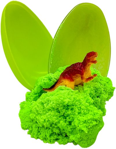Objav Glumi vajcia s prekvapením. Balenie obsahuje dinosaura a kúzelný piesok. Piesok sa ľahko tvaruje, drží pohromade a umožňuje deťom vytvárať rôzne stavby a obrazce.