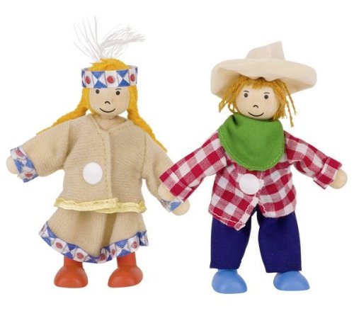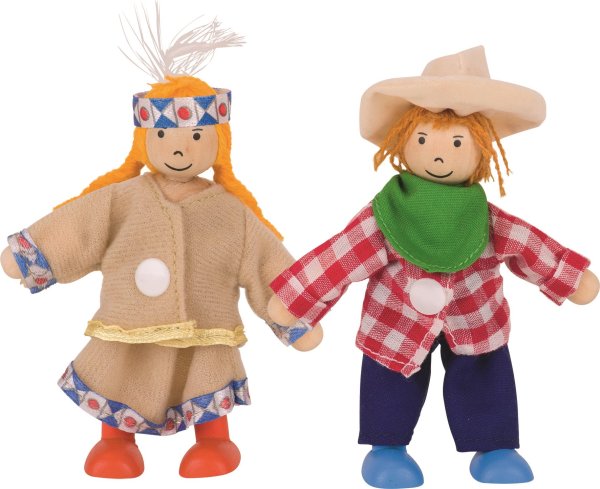 Drevené bábiky sú pohyblivé, môžu sedieť, stáť alebo ležať. Hodí sa do domčekov alebo na samostatné hranie. Vhodné do všetkých domčekov pre bábiky značky Goki. Použitý materiál: drevo, drôt, rôzne druhy textílií. Výška bábik: 10 cm.