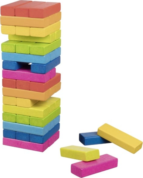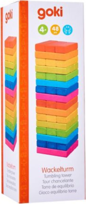 Heslo hry: ROVNOVÁHA. Veľmi jednoduché pravidlá spočívajú v tom, že hráči najprv z drevených doštičiek postavia vysoký hranol – vežičku. Každé poschodie sa skladá z troch farebných doštičiek. Hráč na ťahu vyberie jeden dielik, ktorý nesmie byť z najvyššieho poschodia a umiestni ho na vrchol veže. Pri manipulácii sa nesmie veža nijako pridržiavať. Používať smiete iba jednu ruku a dotýkať sa iba presúvaného dielika! Komu veža ako prvému spadne, ten prehral. Balenie obsahuje: 48 kociek. GOKI patrí medzi najvýznamnejších európskych výrobcov hračiek s vysokou pedagogickou a didaktickou kvalitou. Firma kladie dôraz na bezpečnosť hračiek, ich zdravotnú nezávadnosť a dbá na obnoviteľné zdroje. Drevo je brané tam, kde môže dorastať. Používané dreviny sú javor, buk, orech, lipa, jaseň, borovica, breza a gumovník. Farby a laky pochádzajú od menších výrobcov.