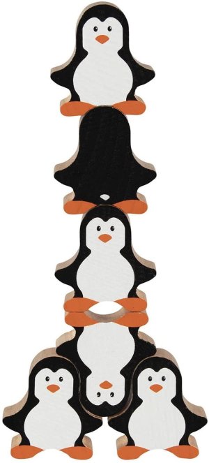 Stohovanie už nemôže byť zábavnejšie! Roztomilí tučniaci ponúkajú množstvo zábavy a možností ako ich skladať na seba a vytvárať tak bláznivé čiernobiele pyramídy.