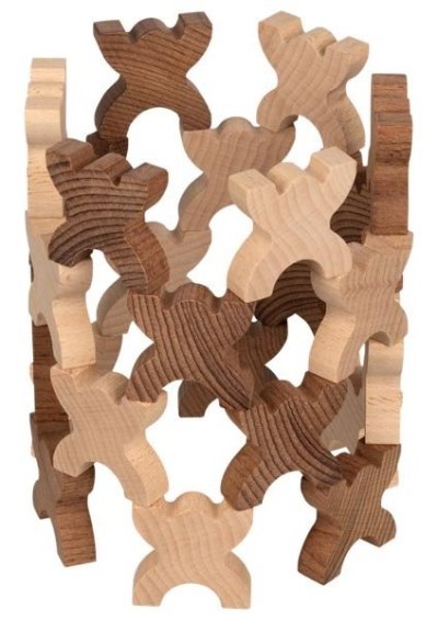 Vyrobené z prírodného dreva, vyrobené v Európe z obnoviteľných EÚ lesov, balené v krabičke z kartónu, rozvíja jemnú motoriku a šikovnosť, trénuje trpezlivosť a technické myslenie, Chce to pevnú ruku a skvelú taktiku.