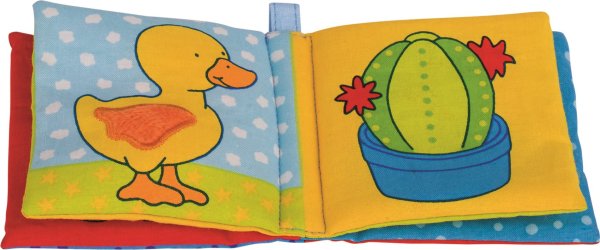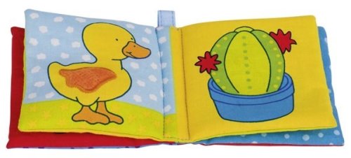Obrázková knižočka pre najmenších je vyrobená z bavlny so všitým pískatkom a šuštiacou fóliou. Na 4 farebných listoch nájdeme osem rôznych obrázkov. Praktické pútko na pripevnenie ku kočíku, sedačke a i. Možno prať v práčke pri max 30°C. Vhodné pre deti od narodenia. Rozmer: 9 x 9 x 3 cm.