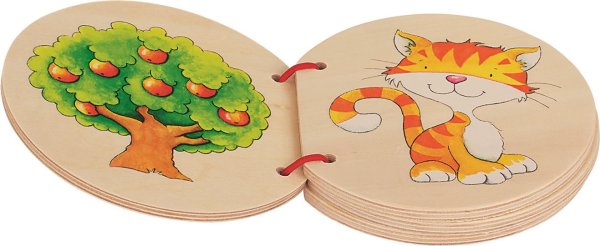 Obrázková knižočka pre najmenších je vyrobená z dreva. Na 4 drevených listoch nájdeme osem rôznych obrázkov. Rozmer: 10 x 9,2 x 2,1 cm.