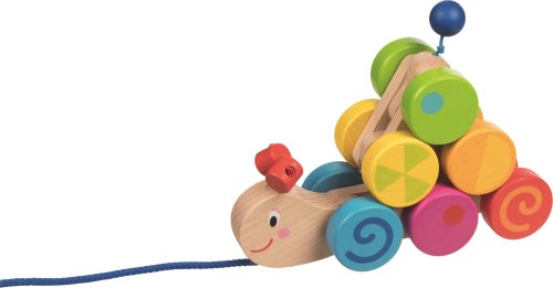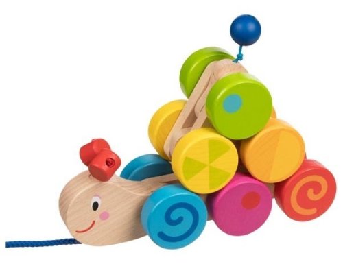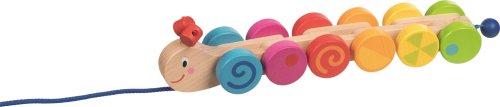 Dúhovo farebná húsenica, vyrobené z masívneho dreva, pohybujúce sa skvele zladené kolesá hrajú farbami, jednotlivé články je možné poskladať do podoby pyramídy a zloženú ťahať, vie bravúrne prekonávať prekážky, podporuje motoriku a zmysel pre rovnováhu, hračka je verným spoločníkom pre prvý výlet.