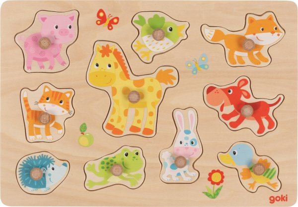 Vkladačka predstavuje domáce zvieratká. Deti sa ich naučia pomenovávať a pritom budú trénovať svoje malé prstíky.