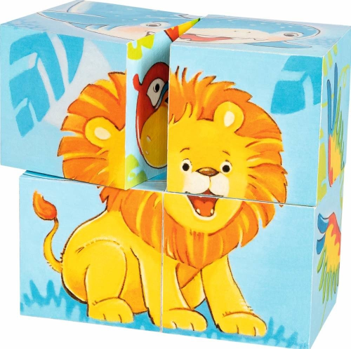 Kocky pre najmenších! To je zábavné skladanie zo 4 drevených kociek, z ktorých môžete postupne vytvoriť 6 obrázkov veselých zvieratiek (lev, slon, veľryba, had, papagáj, krokodíl). Viete ako tieto zvieratká vyzerajú? Dokážete ich poskladať? Ako sa budú volať? Kocky sú skvelým darčekom k narodeninám pre Vaše najmenšie ratolesti. Súčasťou balenia sú predlohy skladaných obrázkov. GOKI patrí medzi najvýznamnejších európskych výrobcov hračiek s vysokou pedagogickou a didaktickou kvalitou. Firma kladie dôraz na bezpečnosť hračiek, ich zdravotnú nezávadnosť a dbá na obnoviteľné zdroje. Drevo je brané tam, kde môže dorastať. Používané dreviny sú javor, buk, orech, lipa, jaseň, borovica, breza a gumovník. Farby a laky pochádzajú od menších výrobcov.