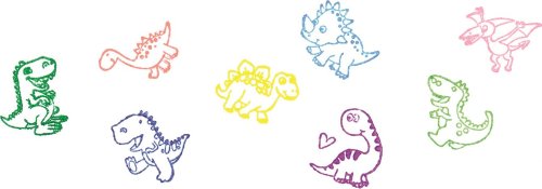 8 druhov dinosaurích mláďat rozvíja detskú fantáziu, rozmery: výška 3 cm, Ø= 2 cm.