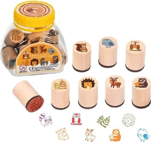 Drevené pečiatky s motívmi zvieratiek žijúcich v lese.