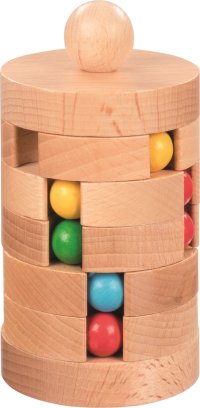 Hlavolamová zábava pre všetky múdre hlavičky. Babylonská veža je hlavolam v tvare valca, v ktorom sú v piatich horizontálne otočných vrstvách oddelene umiestnené guličky v 4 rôznych farbách. Miesto, kde jedna gulička chýba, slúži ako odkladací priestor a dovoľuje tak presúvať jednotlivé guličky v rámci hlavolamu. Cieľom je usporiadať guličky podľa farieb. Rozmery: Ø 7 cm, výška 13,5 cm . GOKI patrí medzi najvýznamnejších európskych výrobcov hračiek s vysokou pedagogickou a didaktickou kvalitou. Firma kladie dôraz na bezpečnosť hračiek, ich zdravotnú nezávadnosť a dbá na obnoviteľné zdroje. Drevo je brané tam, kde môže dorastať. Používané dreviny sú javor, buk, orech, lipa, jaseň, borovica, breza a gumovník. Farby a laky riediteľné vodou pochádzajú od menších výrobcov.