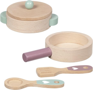 Deti milujú varenie a výbava z dreva je našťastie dosť robustná, aby prežila aj kuchárske katastrofy. Vyrobené z buku.