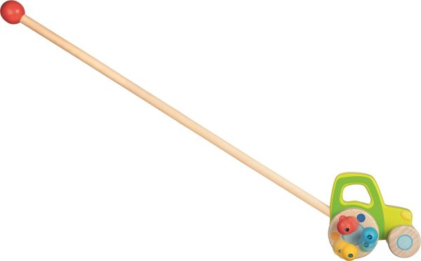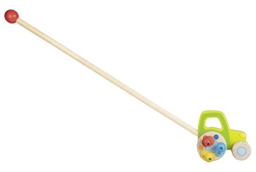 Vyrobené z masívneho dreva, korálky na zadných kolesách vydávajú pri jazde zvuky, podporuje motoriku a zmysel pre rovnováhu, hračka je verným spoločníkom pre výlety dieťaťa.