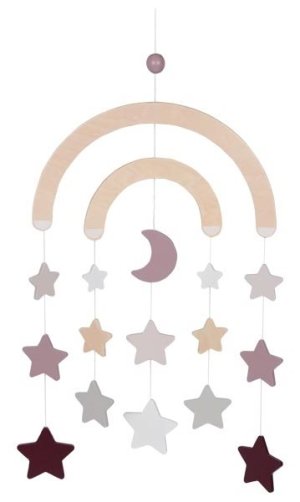 Drevený závesný kolotoč do detskej izby s hviezdičkami a mesiacom, ktorý bude strážiť detské sny. Rozmer: 39 x 45 cm.