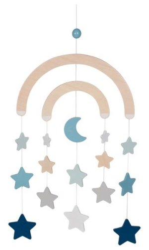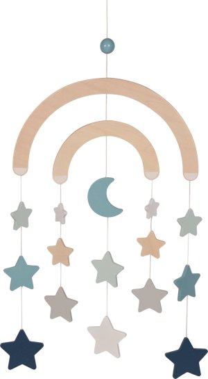Drevený závesný kolotoč do detskej izby s hviezdičkami a mesiacom, ktorý bude strážiť detské sny. Rozmer: 39 x 45 cm.