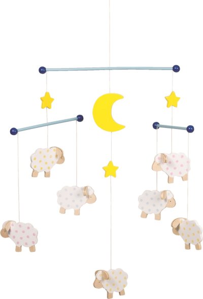 Drevený závesný kolotoč nad postieľku s ovečkami a mesiacom, ktorý bude strážiť detské sny. Rozmer: 40 x 40 x 40 cm.