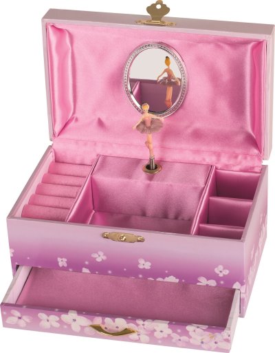Šperkovnica v štýle hracej skrinky poteší malé dámy, ktoré túžia uložiť svoje šperky ako sa patrí. Po otvorení skrinky začne hrať jemná melódia z opery Labutie jazero a malá baletka sa roztancuje pred svojim zrkadlom. Rozmery skrinky: 19 x 11 x 9,5 cm. Upozornenie: Výrobok nie je hračka, jedná sa o dekoratívny predmet. GOKI patrí medzi najvýznamnejších európskych výrobcov hračiek s vysokou pedagogickou a didaktickou kvalitou. Firma kladie dôraz na bezpečnosť hračiek, ich zdravotnú nezávadnosť a dbá na obnoviteľné zdroje. Drevo je brané tam, kde môže dorastať. Používané dreviny sú javor, buk, orech, lipa, jaseň, borovica, breza a gumovník. Farby a laky pochádzajú od menších výrobcov.