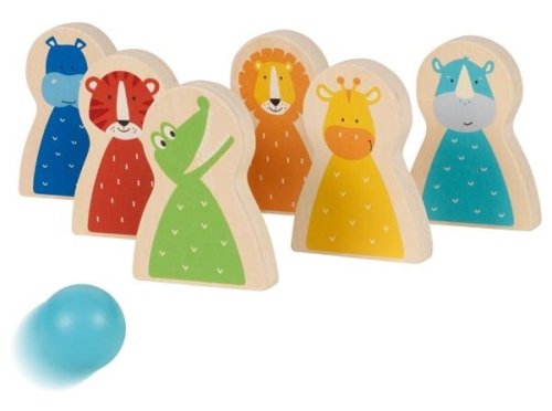 Kolky so zvieratkami z masívneho dreva si môžete zahrať takmer kdekoľvek a kedykoľvek počas roka. Na záhrade, na rovných piesočných cestách, na terase, na stole, ale aj v predsieni sa šesť farebných figúrok rýchlo zostaví a hra v kolku môže začať. Hru si môžete upravovať podľa vlastných pravidiel. Zvieratká môžete rôzne obodovať, vyhlásiť súťaž kto ako prvý zasiahne kráľa zvierat a určite vás napadne množstvo ďalších možností pre oživenie hry. Rozmery: výška kolka 8,5 cm, guľa ∅ 4 cm. GOKI patrí medzi najvýznamnejších európskych výrobcov hračiek s vysokou pedagogickou a didaktickou kvalitou. Firma kladie dôraz na bezpečnosť hračiek, ich zdravotnú nezávadnosť a dbá na obnoviteľné zdroje. Drevo je brané tam, kde môže dorastať. Používané dreviny sú javor, buk, orech, lipa, jaseň, borovica, breza a gumovník. Farby a laky pochádzajú od menších výrobcov.