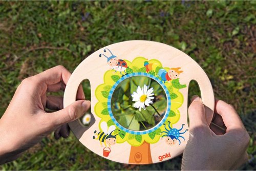 Detská lupa s praktickým úchopom je vyrobená z masívneho dreva.