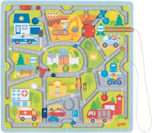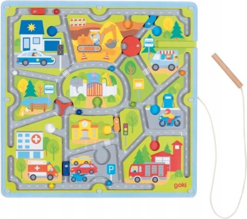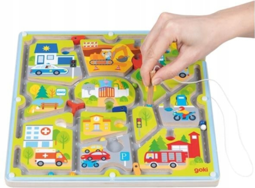 s magnetickým perom môžu malé autíčka prechádzať ulicami tohto magnetického bludiska vo všetkom tom zhone je dôležité nezabudnúť, kto má prednosť na križovatkách, ktorá ulica je jednosmerná a kde je parkovanie prísne zakázané takže hra nielen podporuje jemnú motoriku, ale aj koncentráciu