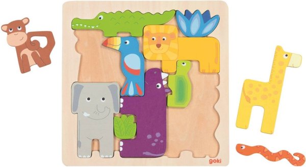 Drevené puzzle s africkými zvieratkami pre deti vhodné aj na samostatnú hru so zvieratkami!