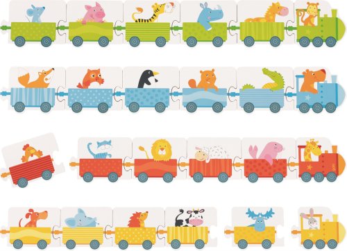 Hrá sa s kockami a dielikmi puzzle. Najprv sa deti môžu naučiť skladať vláčiky podľa farieb a spoznávať zvieratká. Pri hre s kockou si každý hráč zvolí svoju lokomotívu. Dieliky s vagónikmi sa položia obrázkom dole. Hráč hádže kockou a podľa farby, ktorá padne, potom pripája svoje vagóniky. Vyhráva ten, kto poskladá ako prvý celý vláčik. Hru môžete rôzne meniť a vytvárať si vlastné pravidlá.