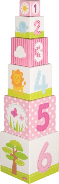 Napriek tomu, že pôsobí veľmi jemne, je tento komín postavený z pevných kociek s hviezdičkami, zvieratkami, číslami a rastlinami. Obsah balenia: 6 kociek z pevného kartónu. Veľkosť najväčšej kocky 14,3 x 14,3 x 14,3 cm. Celková výška po zostavení: 57,5 cm. Vhodné pre deti od 12 mesiacov. GOKI patrí medzi najvýznamnejších európskych výrobcov hračiek s vysokou pedagogickou a didaktickou kvalitou. Firma kladie dôraz na bezpečnosť hračiek, ich zdravotnú nezávadnosť a dbá na obnoviteľné zdroje. Drevo je brané tam, kde môže dorastať. Používané dreviny sú javor, buk, orech, lipa, jaseň, borovica, breza a gumovník. Farby a laky pochádzajú od menších výrobcov.