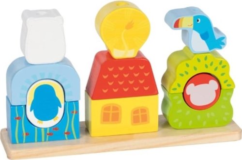 Zábavná stohovacia hra slúži na vkladanie a skladanie jednotlivých dielikov. Každý diel je opatrený otvorom tak, aby ho dieťa mohlo jednoducho nasadiť na stojan a napájať jeden diel na druhý. Hra podporuje prirodzený vývoj dieťaťa, jeho šikovnosť, logické uvažovanie, jemnú motoriku a predstavivosť. Príjemné spracovanie - žiarivé farby.