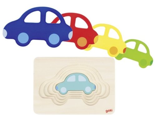 Viacvrstvová vkladačka s rôzne veľkými autami naučí deti porozumieť rozmerom a veľkostiam. Do každej vrstvy je možné vložiť len jedno farebné auto, ktoré je vyrezané z jedného kusu dreva. Výhody: