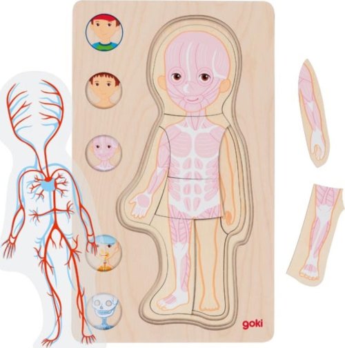 Edukatívne drevené puzzle s motívom ľudského tela.