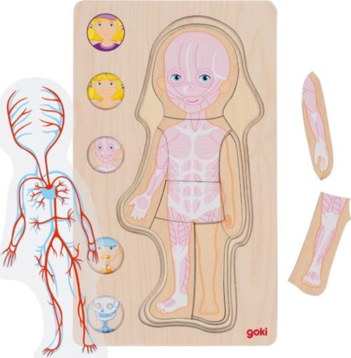 Edukatívne drevené puzzle s motívom ľudského tela.