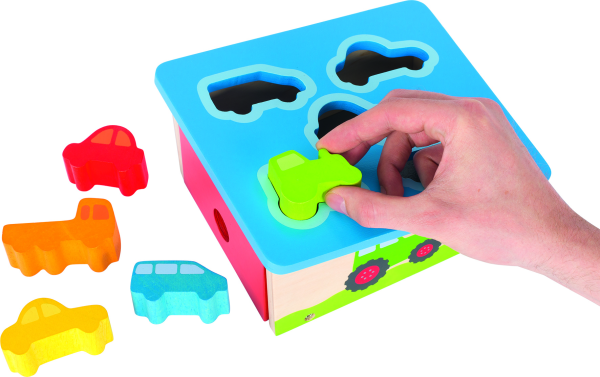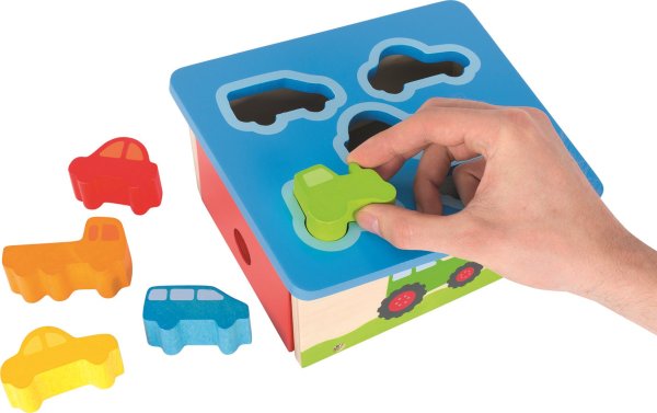 Rozmer boxu: 21 x 18 x 10,8 cm. Obsahuje: box z prírodného dreva s vekom, 5 farebných tvarov. GOKI patrí medzi najvýznamnejších európskych výrobcov hračiek s vysokou pedagogickou a didaktickou kvalitou. Firma kladie dôraz na bezpečnosť hračiek, ich zdravotnú nezávadnosť a dbá na obnoviteľné zdroje. Drevo je brané tam, kde môže dorastať. Používané dreviny sú javor, buk, orech, lipa, jaseň, borovica, breza a gumovník. Farby a laky pochádzajú od menších výrobcov.