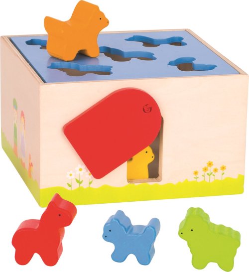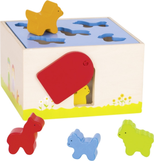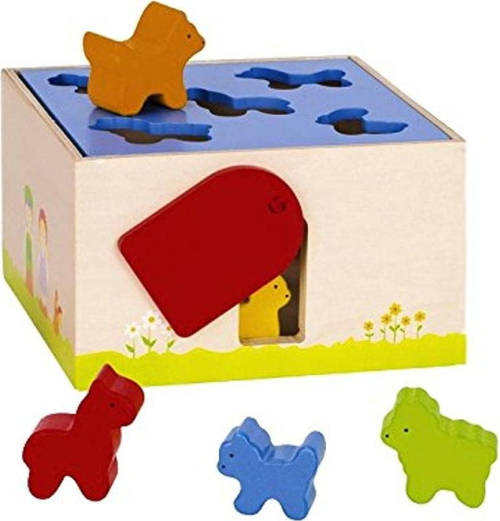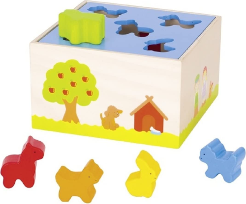 Rozmer boxu: 16 x 16 x 7,5 cm. Obsahuje: box z prírodného dreva s vekom, 5 farebných tvarov. GOKI patrí medzi najvýznamnejších európskych výrobcov hračiek s vysokou pedagogickou a didaktickou kvalitou. Firma kladie dôraz na bezpečnosť hračiek, ich zdravotnú nezávadnosť a dbá na obnoviteľné zdroje. Drevo je brané tam, kde môže dorastať. Používané dreviny sú javor, buk, orech, lipa, jaseň, borovica, breza a gumovník. Farby a laky pochádzajú od menších výrobcov.