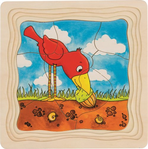 Zoznám sa s vývojovým štádiom listnatého stromu. Nová forma edukatívnej zábavy. Vývojové puzzle je nielen nevšednou drevenou hračkou, ale aj výbornou učebnou pomôckou. Puzzle sa skladá zo štyroch obrázkov, z ktorých každý zobrazuje jednu fázu vývoja stromu. Každá vrstva má iný obrázok a odlišný počet dielikov. Viacvrstvové drevené puzzle je umiestnené v doske (jednotlivé vrstvy rôzne vyfrézované) s pevným okrajom, ktorá slúži zároveň ako podložka na skladanie. Skladanie puzzle rozvíja fantáziu, učia deti zábavnou formou základy prírodovedy a podporuje rozvoj motoriky. Odporúčané pre deti od 3 rokov. GOKI patrí medzi najvýznamnejších európskych výrobcov hračiek s vysokou pedagogickou a didaktickou kvalitou. Firma kladie dôraz na bezpečnosť hračiek, ich zdravotnú nezávadnosť a dbá na obnoviteľné zdroje. Drevo je brané tam, kde môže dorastať. Používané dreviny sú javor, buk, orech, lipa, jaseň, borovica, breza a gumovník. Farby a laky pochádzajú od menších výrobcov.