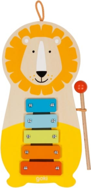 Drevený xylofón v tvare leva pre malých muzikantov.