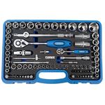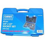 83-dielna gola sada šesťhranných hlavíc 1/4" a 1/2" s povrchovou úpravou matný chróm-micro satin v plastovom kufríku . Nástavce sú opatrené vrúbkovanou časťou pre pohodlnú manipuláciu pri práci. Sada je určená výhradne na ručné použitie.