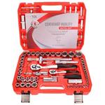Všetky hlavice aj račne v sade sú vyrobené z veľmi kvalitnej ušľachtilej chróm-vanádiovej ocele . Nástrčné hlavice sú optimálne zakalené, čo garantuje ich odolnosť a pevnosť . O životnosť náradia sa teda obávať nemusíte, poslúži vám dlhé roky. Veľkou výhodou je tiež ergonomicky tvarovaná rukoväť pri račniach, ktorá slúži ako ochrana pred prípadným poranením prstných kĺbov.