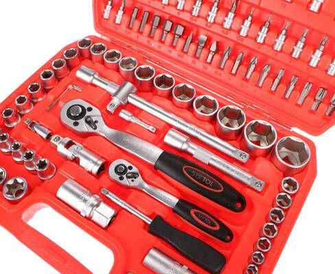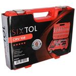 Chcete mať v dielni kvalitnú gola sadu, ktorá bez obáv vydrží aj náročné podmienky? Zaobstarajte si set CRV 108 Profi od značky Sixtol, ktorý využije každý domáci majster aj profesionálny automechanik. V červenom plastovom kufri s kovovými pántami a prackami nájdete 108 kusov náradia. Vďaka praktickému držadlu ho navyše ľahko prenesiete, sada je teda ideálna na cesty .
